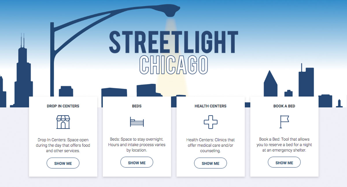 StreetLight provides up-to-date information on shelters, health clinics, emergency beds, mental health services, and more in Chicago.